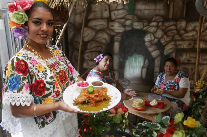 Otro rasgo muy propio de estos alimentos es que son parte de la tradición y de la vida diaria de los habitantes, teniendo épocas y días específicos para ciertos platillos, pero en realidad puede probarlos al momento que guste; de esto modo es común ver un delicioso frijol con puerco los lunes; los domingos la tan famosa cochinita pibil; en época de semana santa es típico ver aquellos preparados con mariscos, huevo y maíz, como los papadzules y el pan de cazón; para cenar nada como los panuchos y los salbutes, masa frita con lechuga, carne, aguacate, tomate y cebolla morada, la diferencia entre uno y otro es que los primeros están rellenos con frijoles; en los primeros días del mes de noviembre, justamente en día de muertos, conocido aquí también como fieles difuntos, se disfruta de un delicioso pib o mucbilpollo, este es un tamal de gran tamaño, el cual se cocina en pequeños hoyos en la tierra, con carbón que ayuda a su cocción, el resultado es un tamal con orillas doradas.